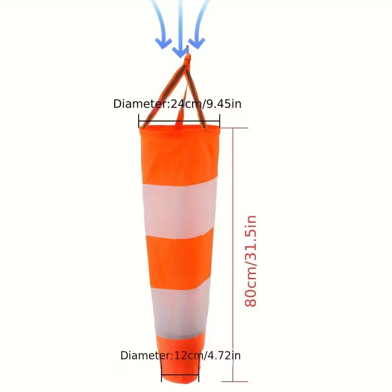 Manga de viento de naranja para exteriores con una cintura reflectante, diseñado para medir la dirección y la fuerza del viento, adecuado para uso aeronáutico.